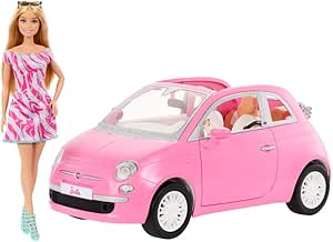Barbie, Veículo para Boneca Fiat Rosa com 1 Boneca e Acessórios, Para crianças a partir de 3 anos