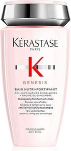 Kérastase Shampoo Genesis Bain Nutri-Fortifiant, Cabelos com queda, Cabelo grossos, Prevenção da queda, Flor de Edelweiss, Raiz de gengibre, 250 ml